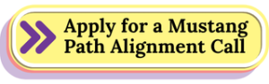Apply for a Mustang Path Alignment Call. In this 1:1 conversation, we’ll explore your vision, uncover what’s holding you back, and see if the Mustang Path is the right next step for you.